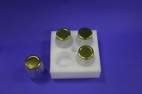 為破局,該品牌引入小型容器專用 EPE 珍珠棉內(nèi)襯方案:廠家根據(jù)其小樣瓶的尺寸,定制四孔陣列式圓孔結(jié)構(gòu),每個(gè)圓孔與瓶身嚴(yán)絲合縫,實(shí)現(xiàn) “單瓶獨(dú)立固定”;EPE 珍珠棉的閉孔氣泡結(jié)構(gòu),能高效吸收運(yùn)輸中的震動(dòng)與沖擊力,從根源上避免瓶身碰撞;同時(shí),輕量化的材質(zhì)讓包裝整體重量比傳統(tǒng)泡沫方案降低 20%,物流成本同步縮減。